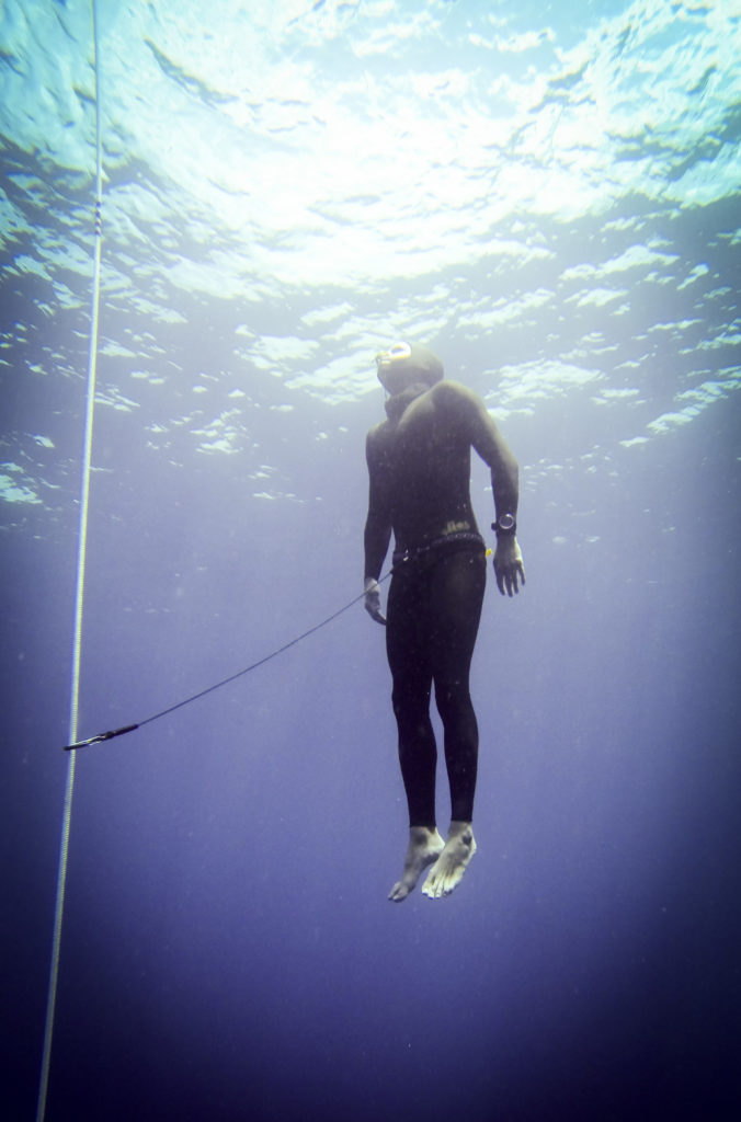 When diving with the lanyard the cable provides no perceptible resistance during the dive, so much so that you hardly know you are wearing it. I’ve done numerous dives over 60m both in constant weight and CNF using this lanyard and it is perfect. We have also tested it in recovery and the lanyard holds with no issues.