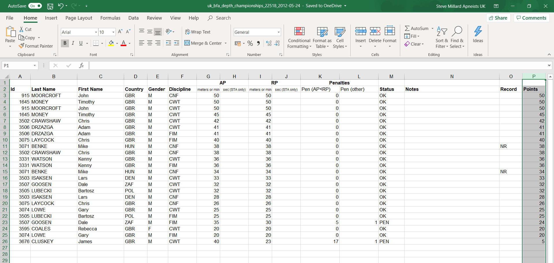 John Moorcroft won with two 50m dives, one was with no fins on. Tim Money finished second with two great Constant weight dives and Mikes two CNF NRs of 34m and 38m saw him finish third overall, and Chris Crawshaw getting the joint second best CNF dive getting the UK third spot. Rebecca Coales had a very comfortable dive to get the top spot for the ladies.